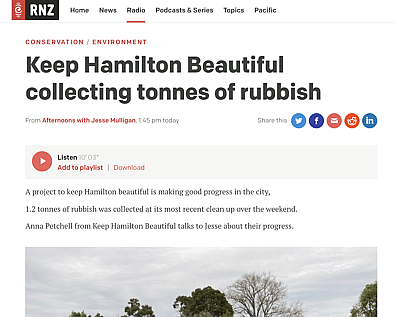 Keep Hamilton Beautiful speaks with Jesse Mulligan on RNZAnna and Jesse speak about Keep Hamilton Beautiful and the importance of rubbish clean ups.